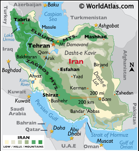 אם תסתכלו על המפה של אירן, תוכלו לראות שהריכוז של האוכלוסיה הפרסית הוא בעיקר מאחורי רכסי ההרים: אלבורז וזגרוס שגובהם הוא מעל ל-4000 מטרים והם נחשבים לרכס ההרים הגבוה במרכז אסיה. הערים טהרן, טאבריז, אספהן ושיראז מוגנות במשך מאות שנים, ואין כמעט אף צבא שהצליח במסע הכיבושים שלו למרות הניסיונות הרבים של טובי הלוחמים ההיסטוריים כמו אלכסנדר מוקדון, שהצליח לאחוז בה שנים ספורות בלבד. מלבד העיר בושהאר הממוקמת לחוף הים של המפרץ הפרסי רוב האוכלוסיה הפרסית חיה בחלק הצפוני ההררי המוגן של המדינה.