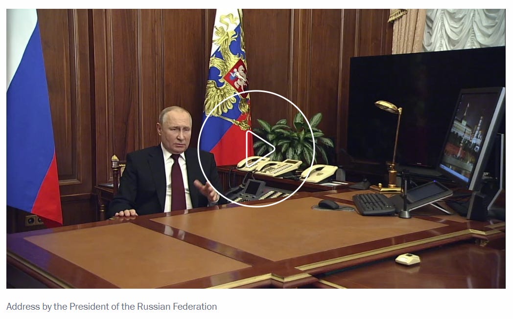 בנאום ביולי 2021 אמר פוטין, “אתם (האוקראינים) מעוניינים במדינה עצמאית משלכם. בבקשה….הפדרציה הרוסית הכירה במציאות הגיאופוליטית החדשה: ולא רק הכירה, אלא, אכן, עשתה רבות לאוקראינה כדי לבסס את עצמה כמדינה עצמאית. לאורך שנות ה-90 הקשות ובאלף החדש, סיפקנו תמיכה ניכרת לאוקראינה. כל "חשבון מדיני" של קייב שתרצה ליישם, בשנים 1991–2013, החיסכון התקציבי של אוקראינה הסתכם ביותר מ-82 מיליארד דולר, בעוד שכיום היא מחזיקה בסכום של 1.5 מיליארד דולר בלבד של תשלומים רוסיים עבור מעבר גז לאירופה . אם הקשרים הכלכליים בין מדינותינו היו נשמרים, אוקראינה הייתה נהנית מהטבה של עשרות מיליארדי דולרים”.